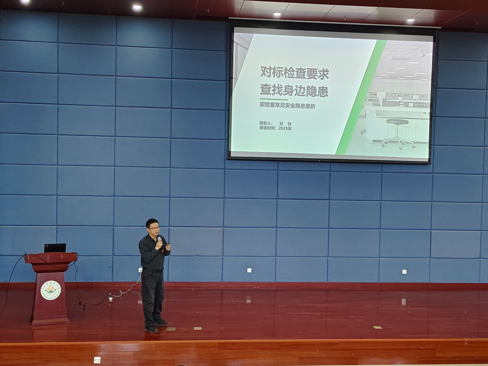 当日上午,活动特邀实验室EHS研究中心讲师、中国职业健康安全高级讲师、实验室安全培训、隐患排查专家刘存老师作专题报告,吸引了草业学院、资源与环境学院、林学院等7个学院师生代表200余人参加。校实验室设备管理中心与草业学院重点实验室全程组织,并于当日下午15:00在同一会场开展实战应急演练。