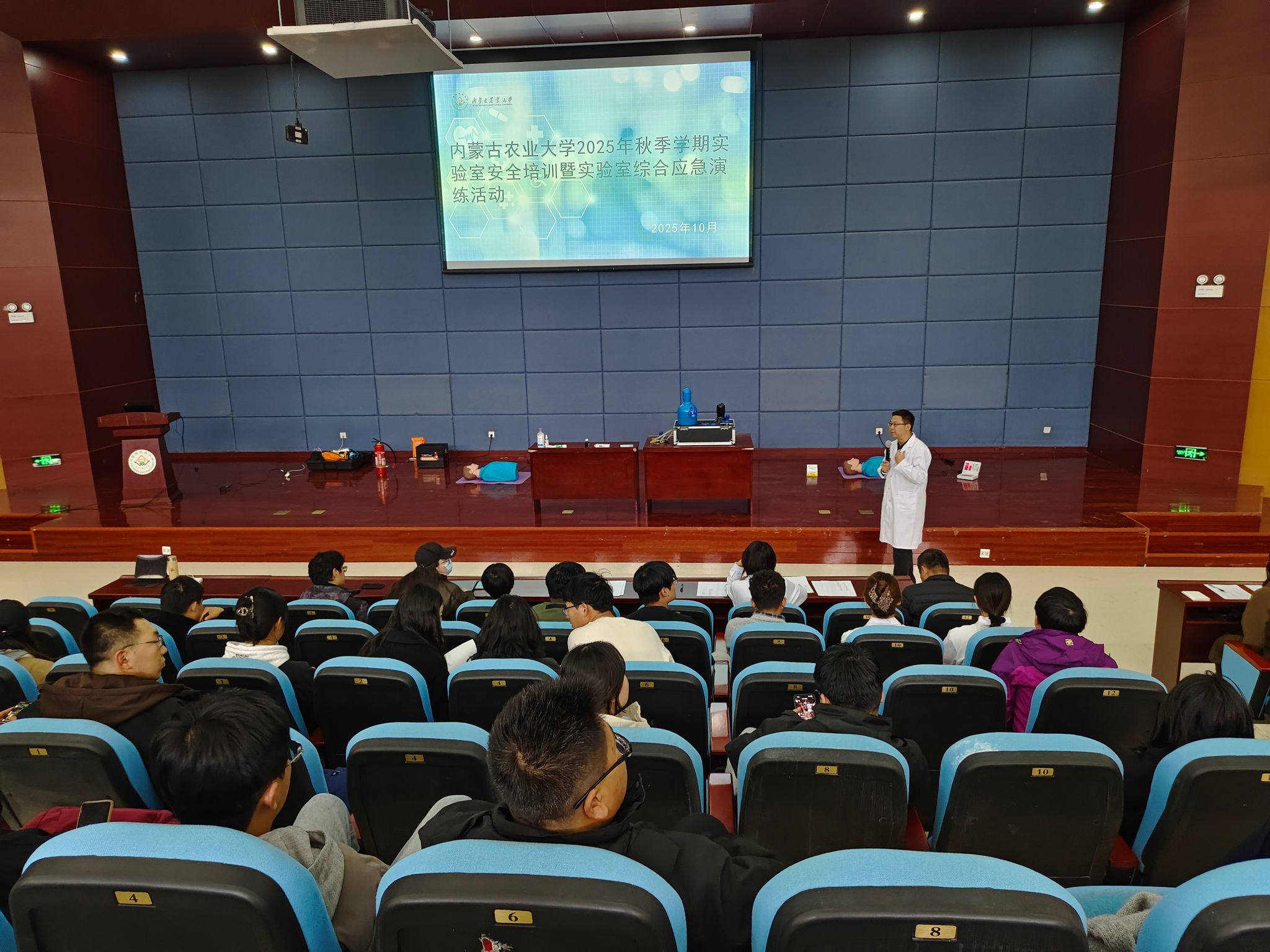 为提升我校师生安全意识及应急处置能力,2025年10月21日全天,内蒙古农业大学在南校区生命科学大楼2楼会议室举办“实验室安全系列培训及演练”活动,本次活动由内蒙古农业大学实验管理中心主办,草业学院重点实验室承办。